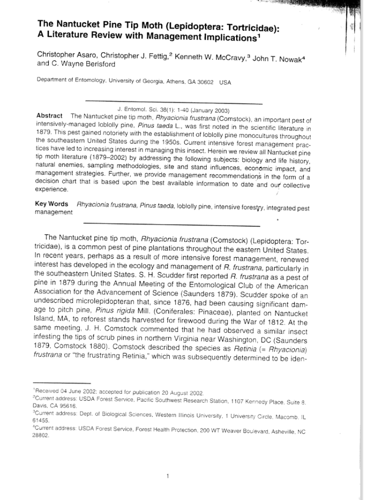 The Nantucket Pine Tip Moth (Lepidoptera: Torticidae): A Literature Review with Management Implications