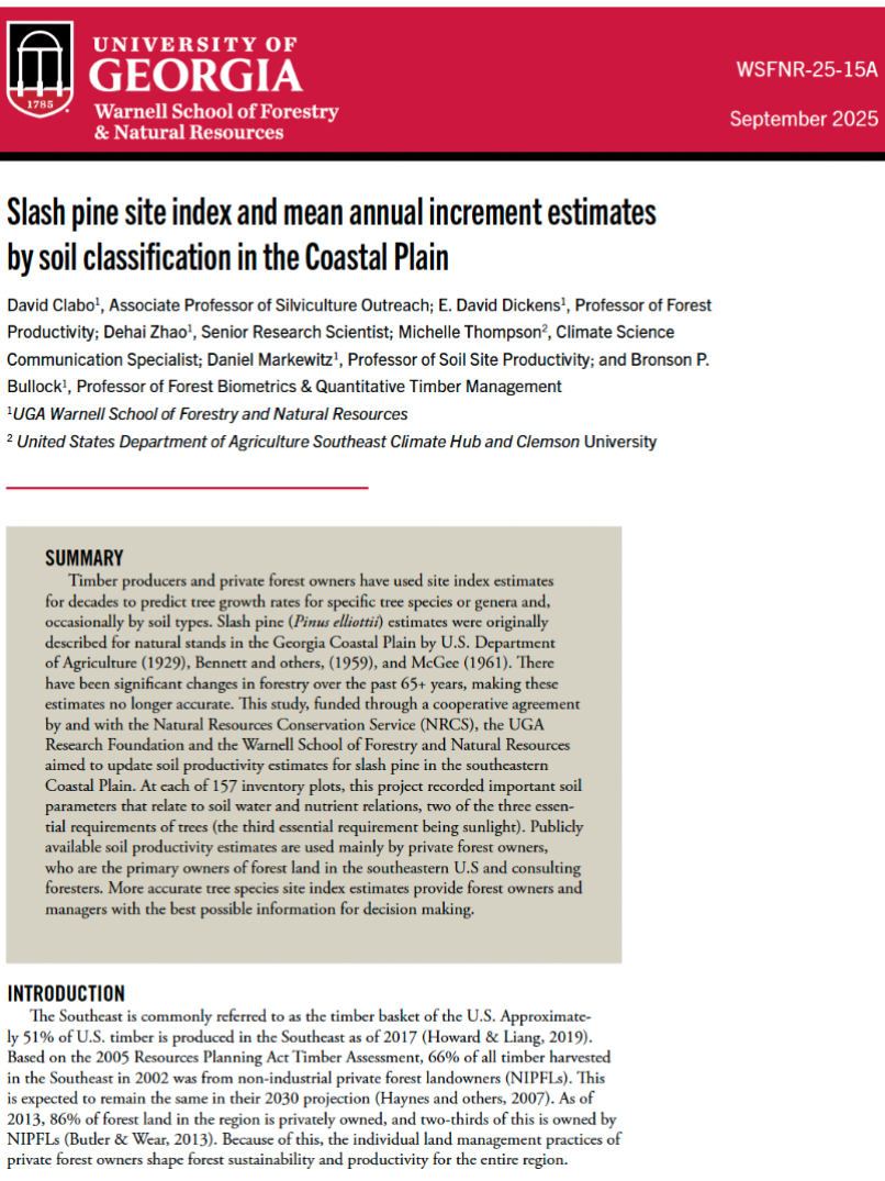 Two studies were conducted by the Natural Resources Conservation Service (NRCS) and the University of Georgia to determine current site index estimates by soil characteristics in the Coastal Plain physiographic region for two important timber species: loblolly and slash pine. This paper describes both studies and how the productivity (SI ...
