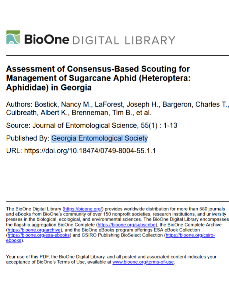 Title: Assessment of Consensus-Based Scouting for Management of Sugarcane Aphid (Heteroptera: Aphididae) in Georgia